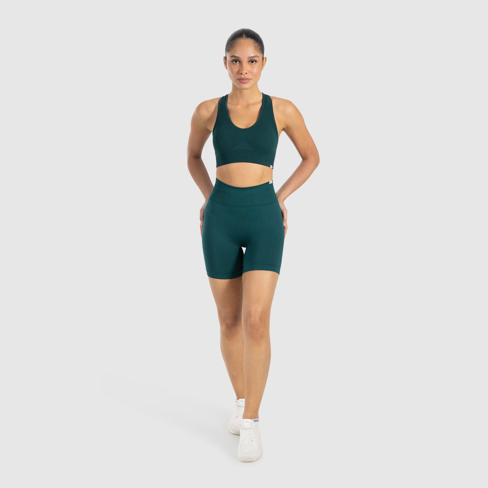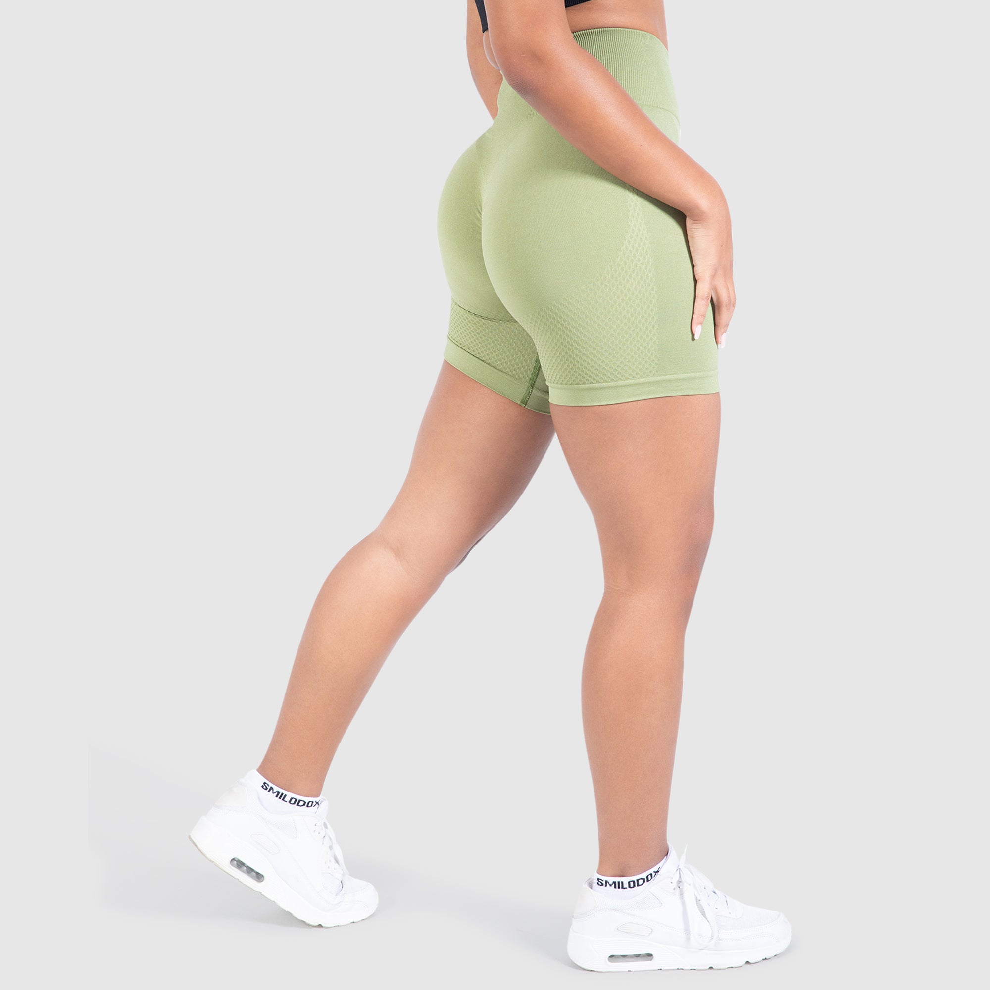 Unsere Damen Shorts sind der perfekte Begleiter für jedes Workout. Der anliegende, squatproof Bund sorgt für sicheren Halt, während die sichtbare Scrunchnaht am Gesäß eine schöne Booty-Form zaubert. Der schweißabweisende Funktionsstoff hält Sie auch bei intensiven Trainingseinheiten trocken und frisch. Mit ihrer Sanduhr-Silhouette unterstreichen unsere Shorts Ihre feminine Figur und bieten maximale Bewegungsfreiheit.